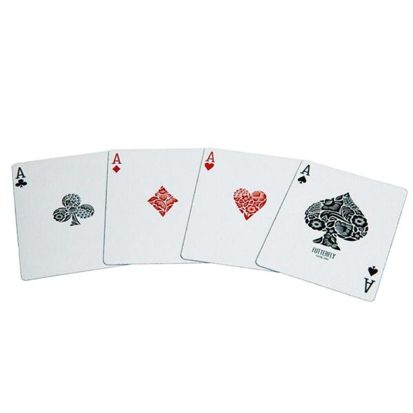 I mazzi Futterfly comprendono 54 carte e una doppia dorso. Sono stampati da Cartamundi su Slimline Card Stock con rifinitura True Linen B9. Queste carte non sono contrassegnate.