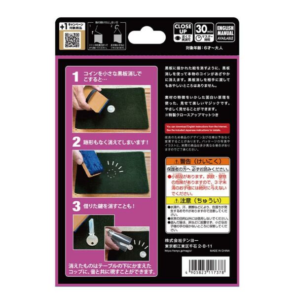 Come si cancellano i disegni fatti con il gesso da una lavagna, usate il "cancellino" per far sparire vere monete davanti agli occhi del pubblico!